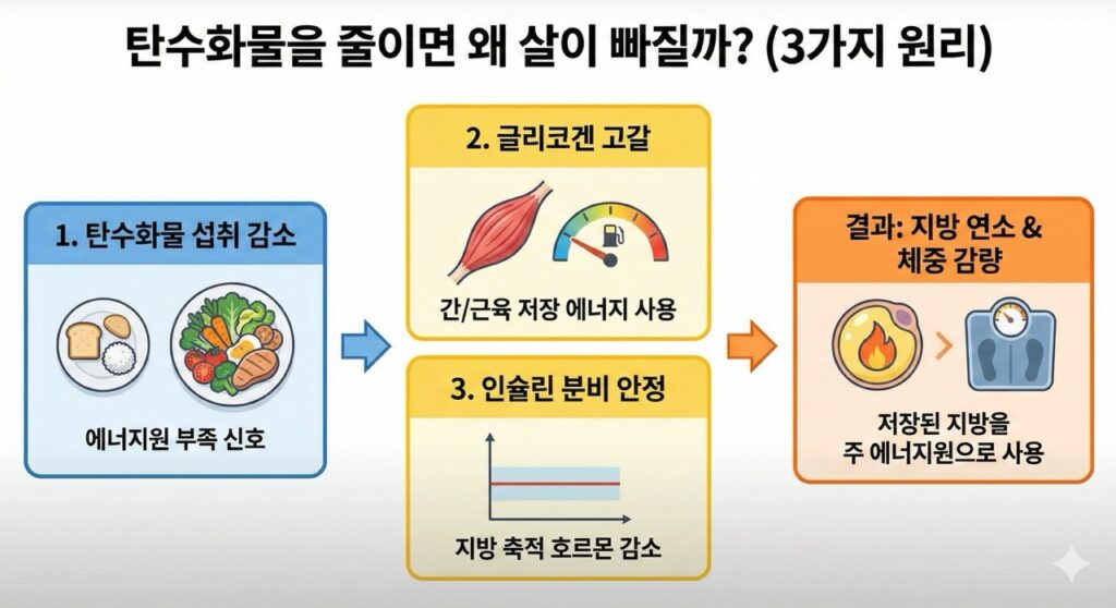 3) 탄수화물을 줄이면 왜 살이 빠질까? (원리 3가지)
