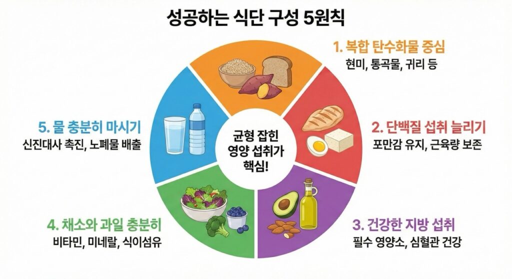 성공하는 식단 구성 5원칙(탄·단·지·채소·수분)