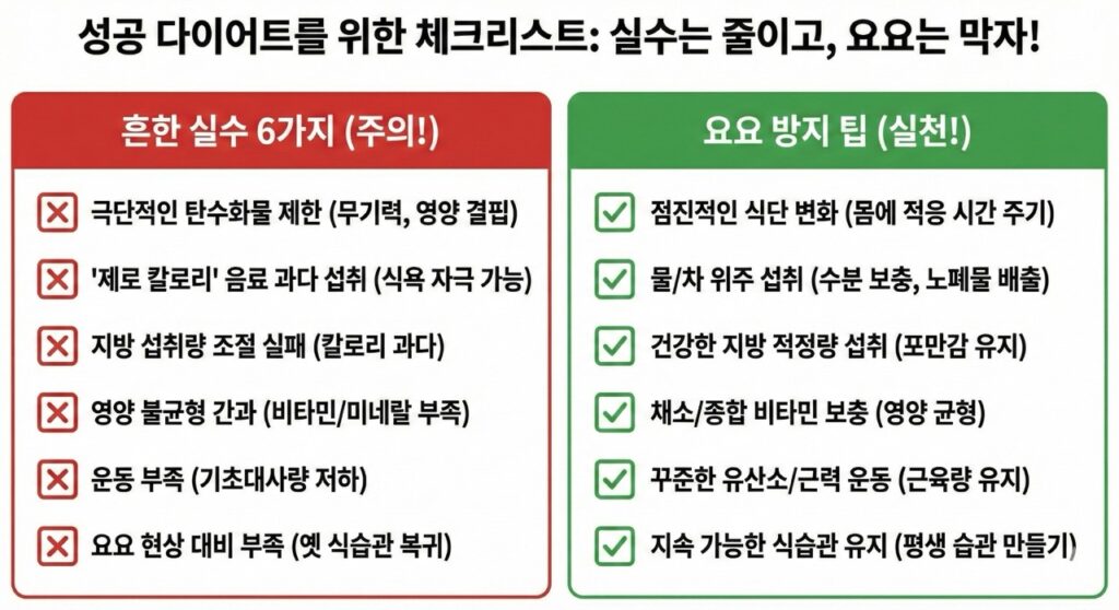 탄수화물 다이어트는 효과적일 수 있지만, 몇 가지 주의사항을 간과하면 오히려 건강을 해치거나 요요 현상을 겪을 수 있습니다.